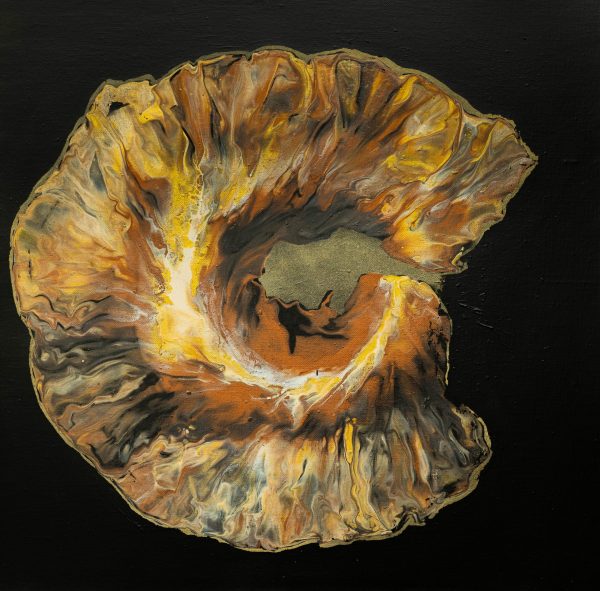 Ammonite draws on spiral forms found in nature as a meditation on time, growth, and continuity. The coiling motion implies both expansion and return, evoking ancient rhythms embedded within matter itself. The painting functions as a visual metaphor for cyclical becoming and deep temporal memory.