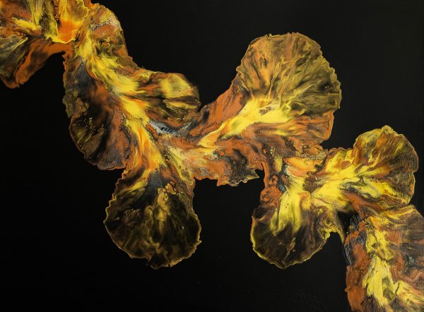 Molten Ascent captures heat and gravity in dynamic tension. Flowing forms surge upward, suggesting transformation driven by elemental pressure. The work embodies ascent as an act forged through resistance.