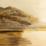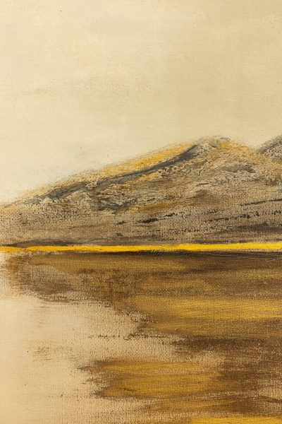 This painting reflects a horizon suspended in light. A space where land, sky and reflection merge into stillness. It invites contemplation of distance not as separation but as a place of calm convergence between presence and infinity.