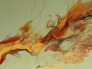 Painted on a deep edge canvas, continuing my concept from my first Awakening piece here I have used burnt orange, golds, copper and contrasting chocolate brown to create the wing like composition of bird in flight.